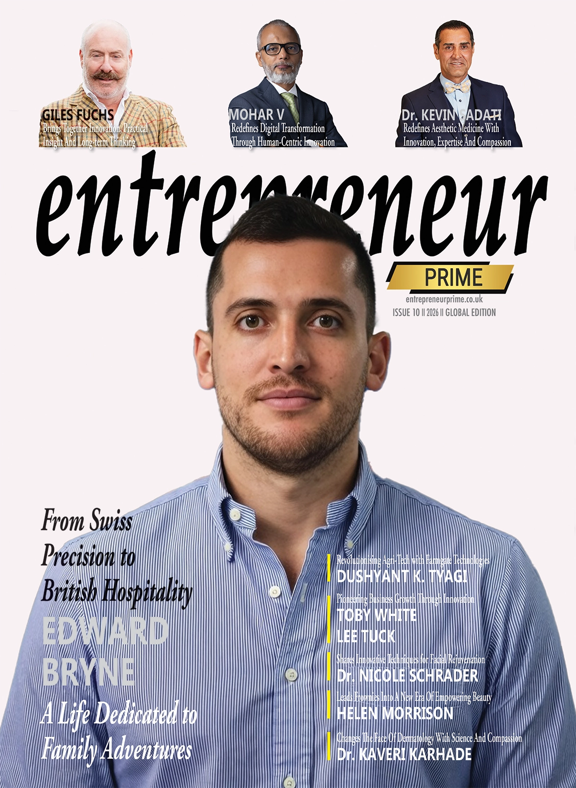 In this fourth issue of Entrepreneur Prime magazine, we celebrate the audacity of visionaries who are not just navigating uncharted territories but are also redrawing the maps of their respective fields. Their stories are more than narratives of personal triumph; they represent a beacon for aspiring entrepreneurs and innovators worldwide. Our cover features Dr. Hugo…